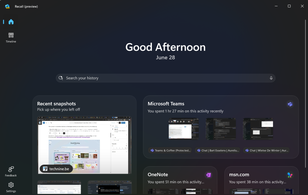 • [NEW] We’re working on the fix for an issue causing some Insiders to see a message saying they don’t have an eligible camera for Recall when they do.
