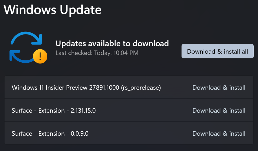 • [NEW] Insiders using ARM64 PCs may observe crashes with Visual Studio or applications that depend on .NET Framework. To resolve the problem, scan for Windows Updates and install the latest .NET Framework update.