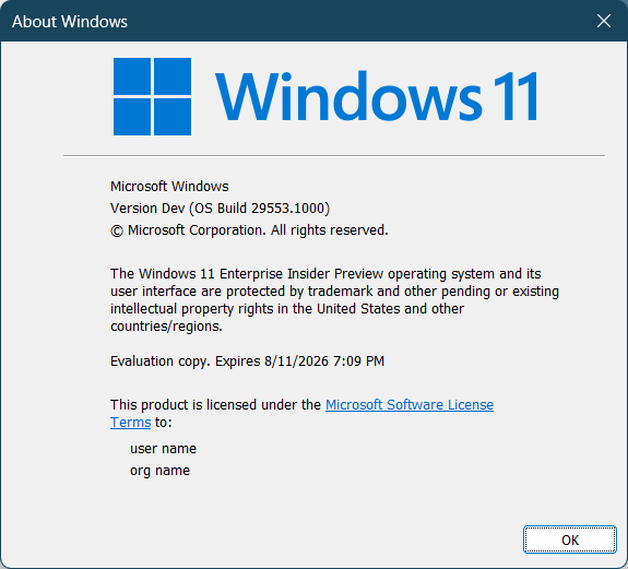 Hi all, yesterday Microsoft released Windows Insider Preview Build 29553.1000 to the Windows 11 Insider Canary Channel on the optional 29500 build series.