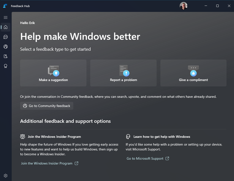 Introducing the new Feedback Hub, bringing a refreshed, modernized experience available as an app update today for Insiders in Dev and Canary.