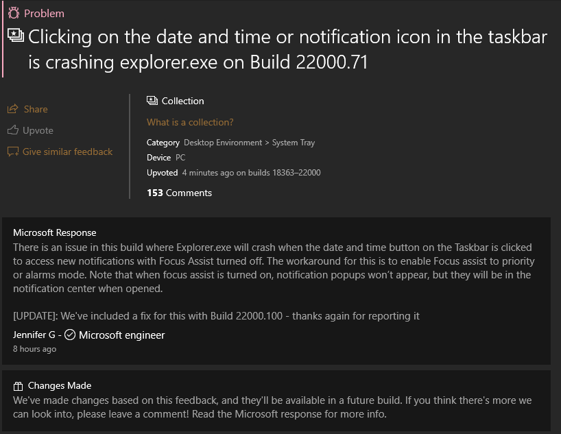 - We fixed the issue that was causing Explorer.exe to crash when the date and time button on the Taskbar is clicked to access new notifications with Focus Assist turned off.