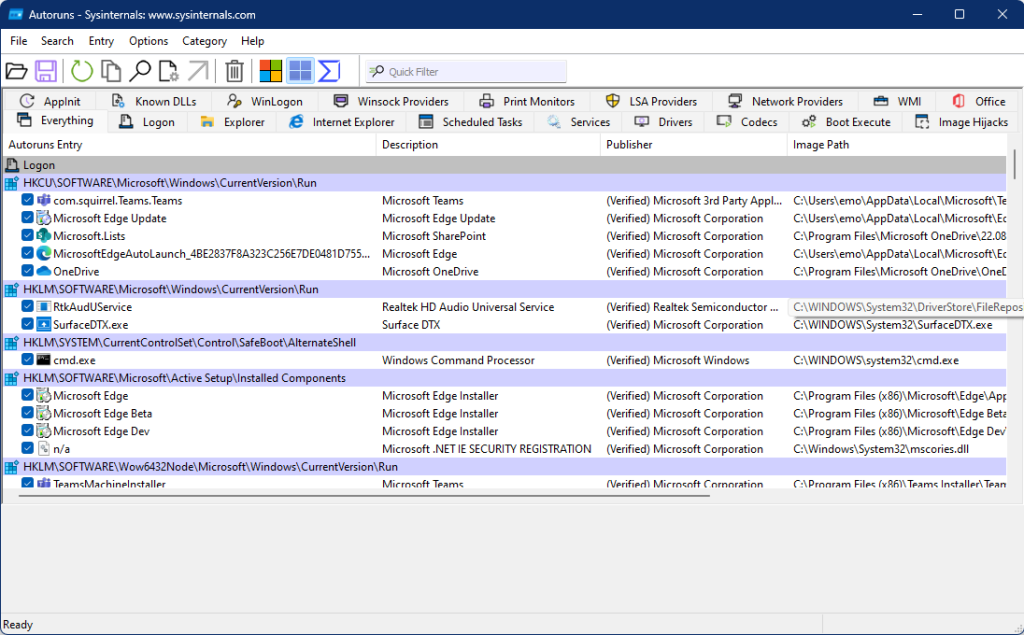 Autoruns is the one place to see everything that gets started when Windows starts up
