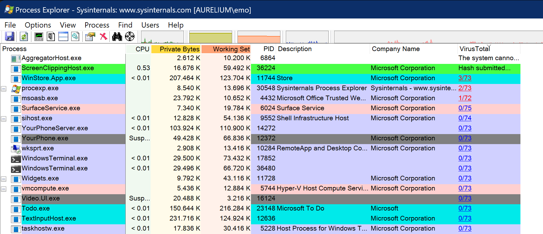 Now you almost instantly know the result on virus total for all your running processes (right column)