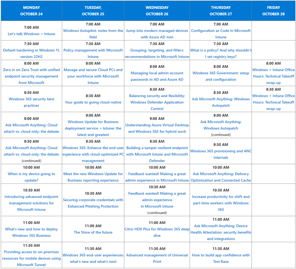 Next week, starting October 24th 2022, Microsoft is organizing the “Microsoft Technical Takeoff – Windows + Intune”