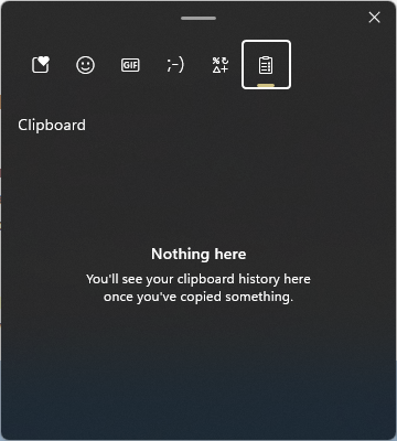 Clipboard History’s empty (Feedback Hub: https://aka.ms/AAert27)