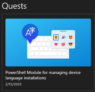 A new Quest in Feedback Hub, testing adding languages with the new PowerShell commands:
