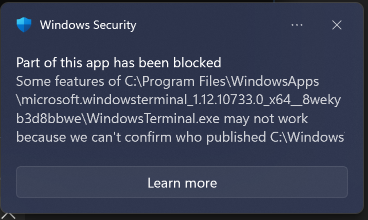 - Fixed an issue where the prompt wasn’t coming to the front when launching Windows Terminal as an admin from Start’s right-click context menu (WIN + X).
