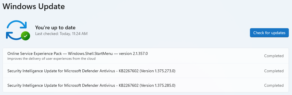 All updates went smooth here, noticed a cache issue since a few builds, with settings app open, check for updates & leave the app open (can be minimized) after a while all updates that have passed are stacked up as ‘completed’, they only get cleared when the settings app is closed