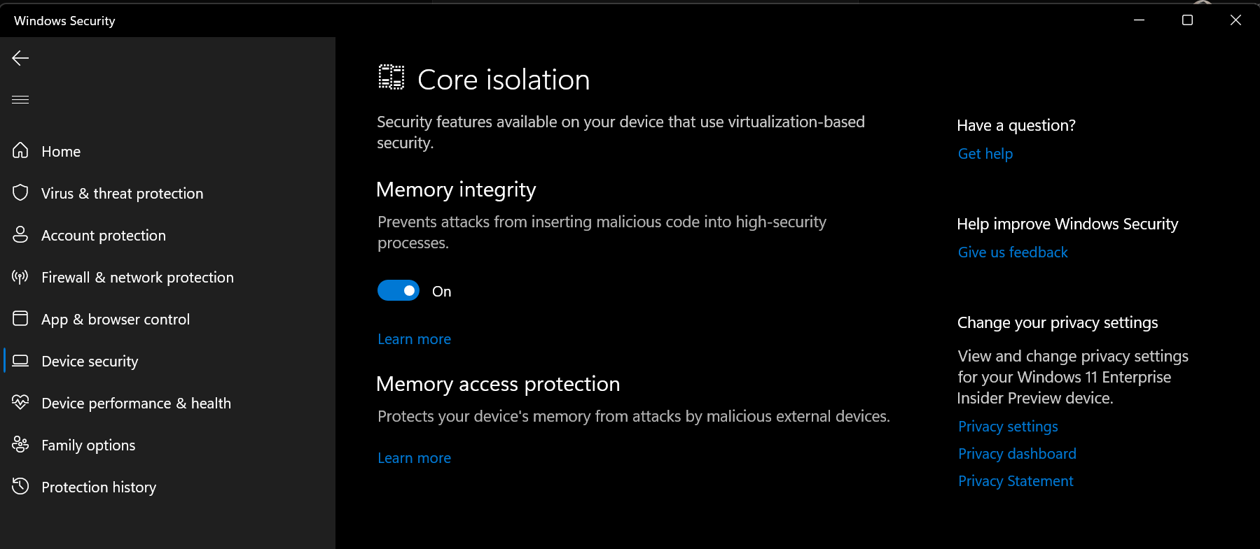 If no more incompatible drivers are found you will be able to use core isolation (after a restart)