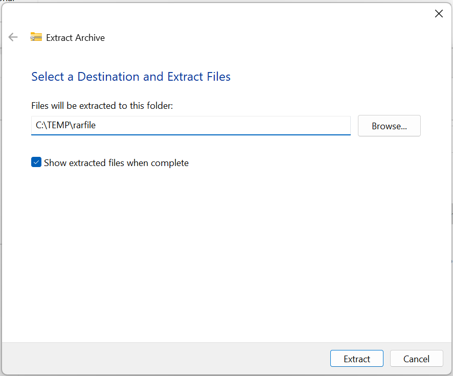 Decompression of a rar file doens’t continue after selecting the target folder (Feedback Hub: https://aka.ms/AAldqyn)