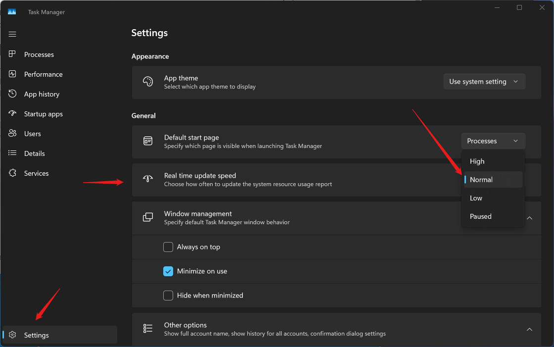 By default, Task Manager updates the data every two seconds, which may be too fast or too slow for your needs. You can change this setting and choose a different update speed, from high to low. To do this, go to the view menu at the top of Task Manager, and click on Update speed. Then, choose the speed you want from the options.