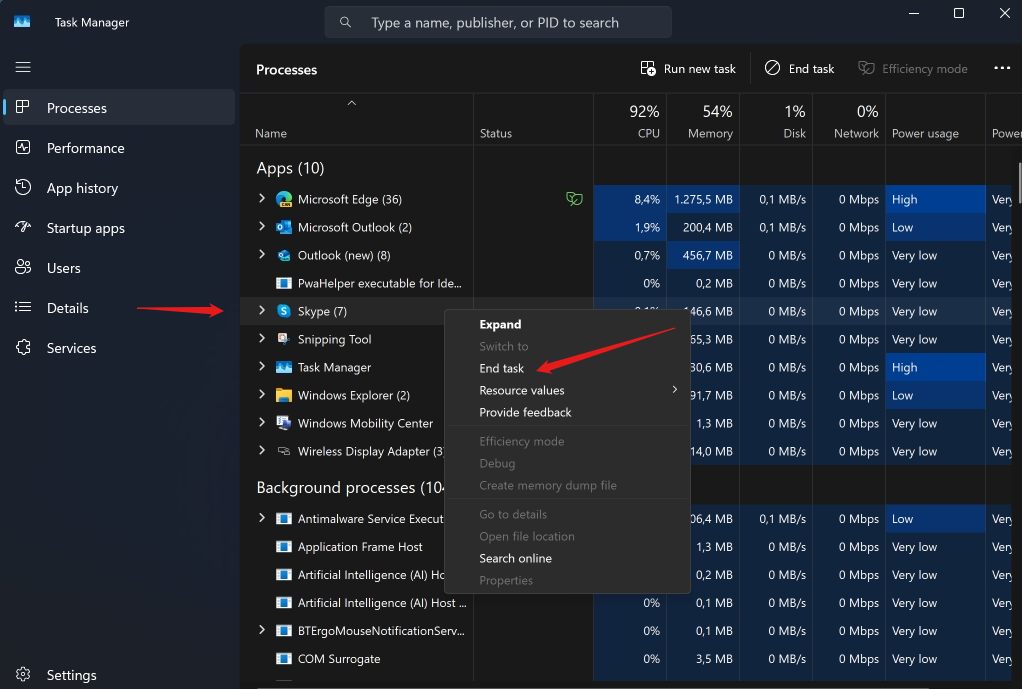 Sometimes, an app may stop responding or behave erratically, and you may not be able to close it normally. In that case, you can use Task Manager to force it to quit. To do this, select the app from the list of processes, and click on the End task button at the bottom right corner. Alternatively, you can right-click on the app and choose End task from the menu.