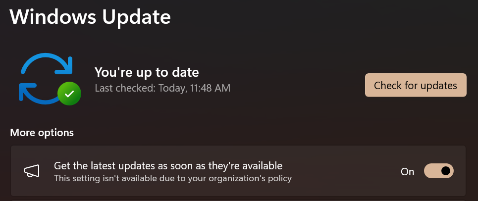 A quick update for who is ion the Dev channel andhas the option enabled to get the latest updates as soon as they are available set to on: