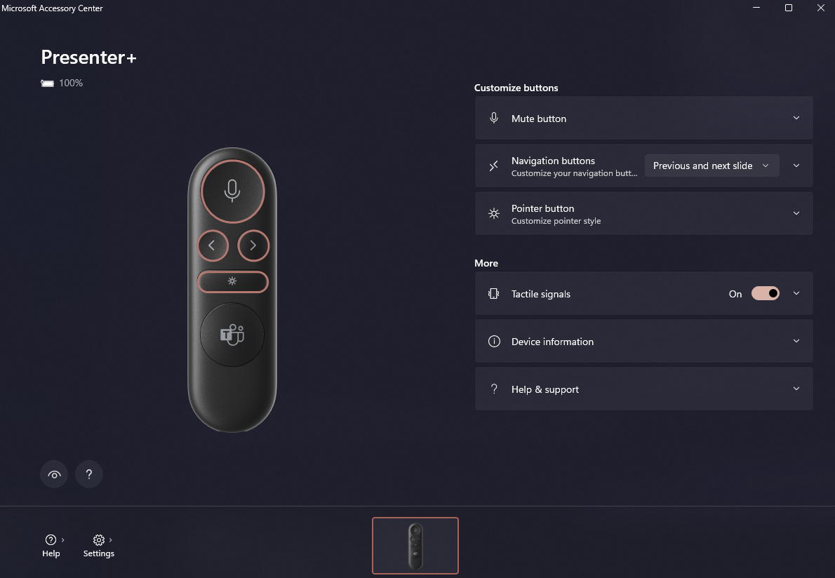 - Customization: Tailor the Presenter+ to your needs using the Microsoft Accessory Center app, adjusting settings like laser pointer size and color.