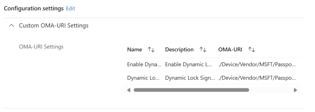 • OMA-URI: ./Device/Vendor/MSFT/PassportForWork/DynamicLock/DynamicLock